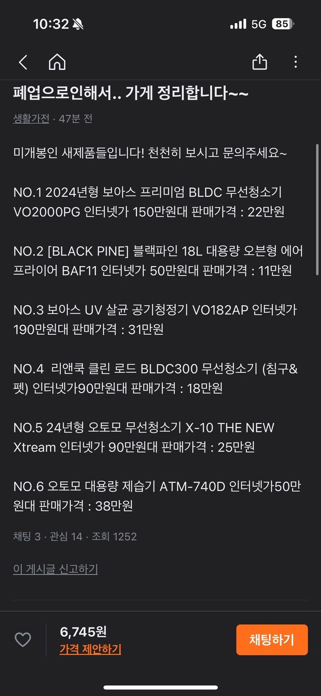 뭔 듣도보도 못한 제품 네이버나 쿠팡에 검색하면 고가에 검색되게 해놓고 당근에서 미개봉 새상품이라고 1/5 가격에 올림..
