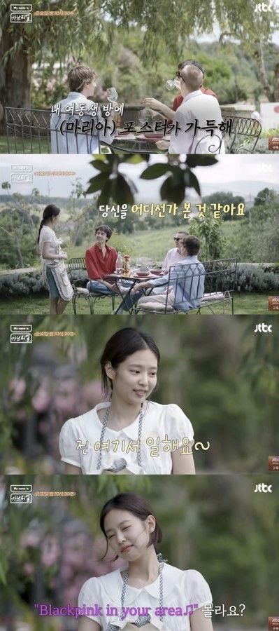 지난 4일 방송된 JTBC 예능 프로그램 '마이 네임 이즈 가브리엘'에서 블랙핑크 멤버 제니가 이탈리아 농가 민박집 사장 마리아의 삶을 살았다.