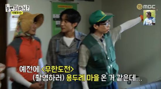 유재석은 마을 이장에 "예전에 '무한도전' 촬영 때 저희가 오지 않았냐"라고 물었다. 이에 이장은 "제가 지금 그 촬영지에서 농사를 짓고 있다"라며 '무한도전' 촬영지임을 밝혔다.