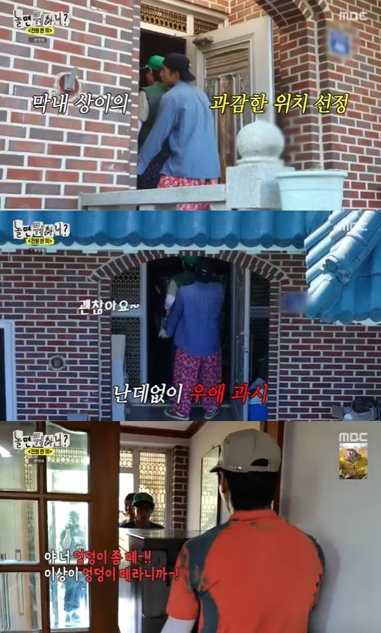 김치냉장고를 운반하는 동안 유재석은 "엉덩이 좀 떼. 이상이 엉덩이 좀 떼"라며 연신 불평을 호소했지만 이상이는 전혀 개의치 않는 모습으로 김치 냉장고를 옮기는 것에만 집중해 웃음을 자아냈다.