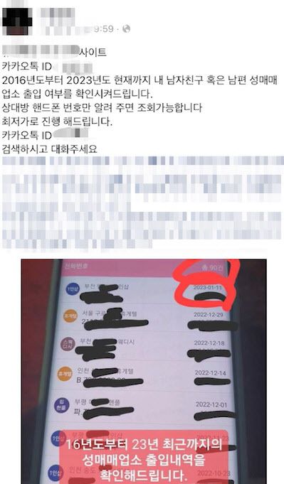 B씨는 성매매 업소 운영자들이 손님 출입 기록이나 인적 사항 등을 정리해 공유하는 애플리케이션을 통해 개인정보를 확보했다.