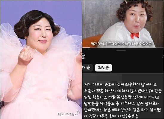 사진 속 한 누리꾼은 신기루와 홍윤화를 언급하며 "진짜 죄송한데 살 빼세요. 두 분 다 결혼한 지 꽤 되지 않았나요? 비만은 임신 힘들어요. 제발 본인들만 생각하지 마시고 남편분들 생각 좀 해주세요. 같은 남자로서 안타깝네요"라는 댓글을 남겼다.