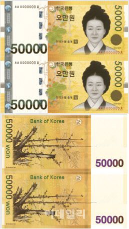 한은은 최초로 연결형 5만원권을 발행하면서 수요가 높은 앞쪽 기번호(화폐의 일련번호)에 대한 경매를 실시한다고 6일 밝혔다. 경매 수익금은 전액 이웃돕기 성금으로 기부할 예정이다.