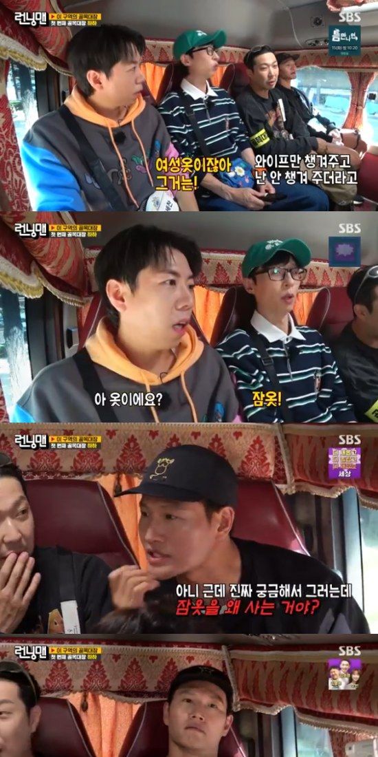 그러면서 김종국은 "보통 입던 옷이 조금 낡거나, 자기 몸에 잘 감기는 옷을 잠옷으로 입는 거 아니야?"라면서 "나는 잠옷을 따로 구입하는건 좀 이상하다"고 말했다.