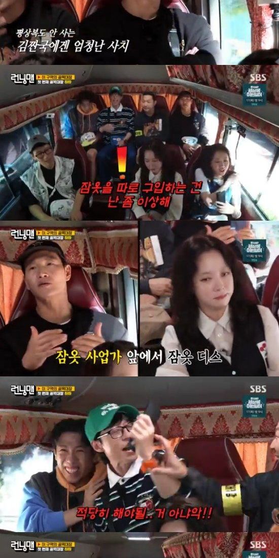 (엑스포츠뉴스 오수정 기자) '런닝맨'에서 김종국이 잠옷 사업을 시작한 송지효 앞에서 '잠옷 디스'를 했다.