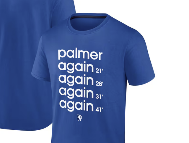 첼시 공격수 콜 파머가 잉글리시 프리미어리그 사상 첫 전반에만 4골을 넣는 전반 포트트릭을 완성한 가운데 그의 기념 티셔츠를 첼시가 내놨으나 혹평을 듣고 있다.