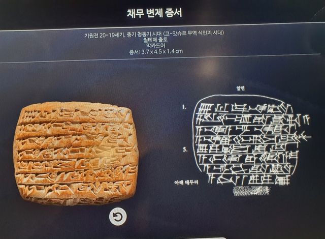 국립중앙박물관에 전시되어 있는 설형문자 토판. 이름부터 ‘채무 변제 증서’다….