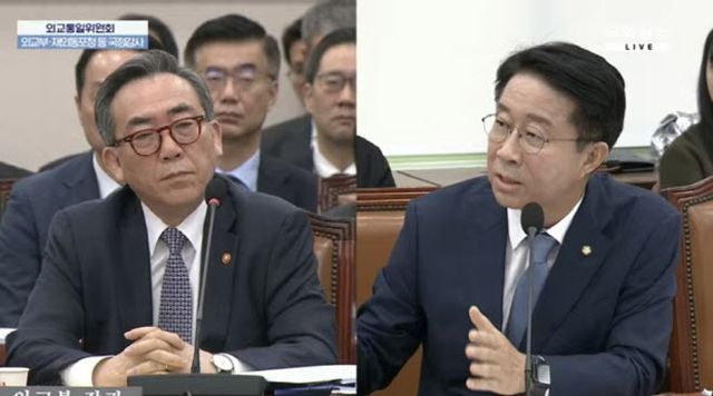 조태열 장관은 “의원님 말씀에 유념하겠다”고 답했다.