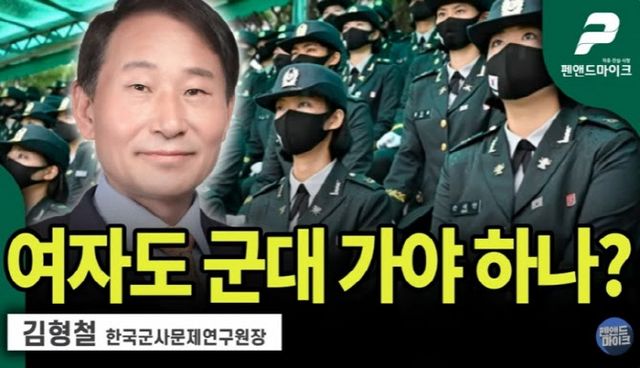 108만 구독자를 보유한 유튜브채널 ‘펜앤드마이크TV’는 지난 달 23일 ‘여자도 군대 가야 하나?’라는 제목의 김형철 한국군사문제연구원장 인터뷰 영상을 올렸다.