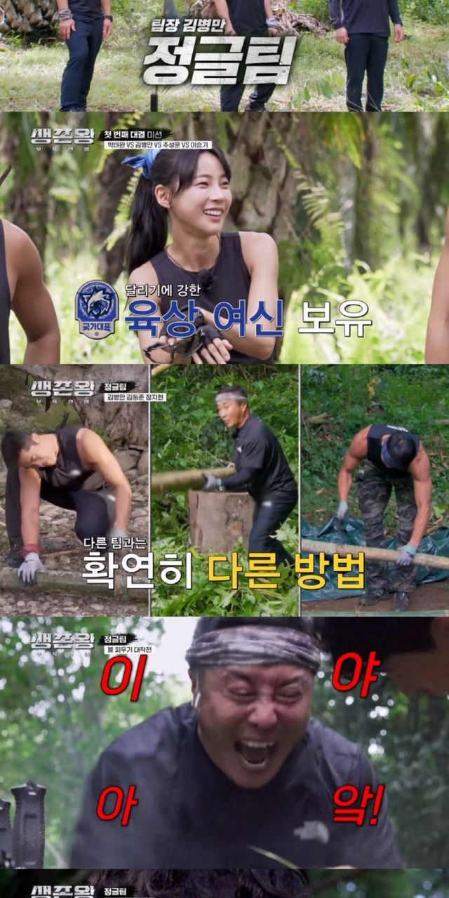 각자 설렘과 두려움을 안고 ‘피지컬 팀’ 추성훈 김동현 박하얀, ‘정글 팀’ 김병만 김동준 정지현, ‘군인 팀’ 이승기 강민호 아모띠, ‘국가대표 팀’ 박태환 정대세 김민지가 한자리에 모였다. 누구 하나 빠지지 않는 강자의 포스에 김병만은 “정글에서 내가 가장 초라해 보인 건 오늘이 처음이다”라며 “예전에 했던 프로그램과 전혀 다르다. 하루에 한 번씩 기진맥진할 때까지 체력을 써야 한다”라고 혀를 내둘렀다.