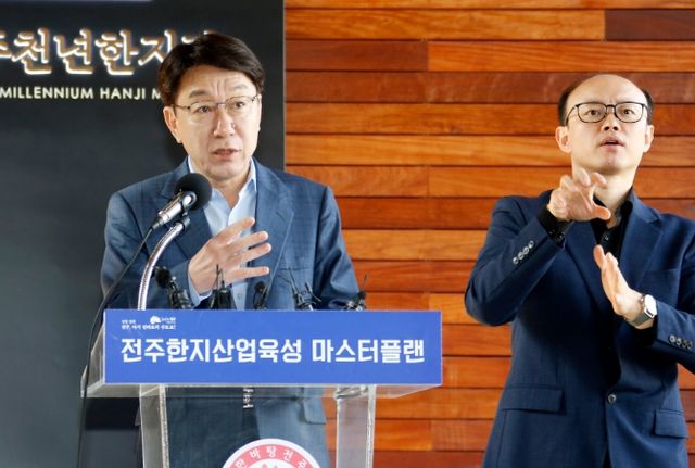 | ▲ 전주한지산업 육성 계획 브리핑하는 우범기 전주시장 |