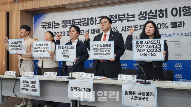 결과보고서가 채택됐음에도 시정 조치를 하지 않은 정부 기관도 절반이 넘었다. 경실련에 따르면 정부 부처가 결과보고서를 바탕으로 개선 내용을 제출한 자료인 ‘시정 처리결과보고서’의 미제출률은 지난해 60%를 기록했다. 정지웅 경실련 시민입법위원장은 “시정 조치가 낮아지면 가장 큰 이익을 보는 사람들은 공무원이고 제일 큰 피해는 국민이 입는다”며 성실 이행을 촉구했다.