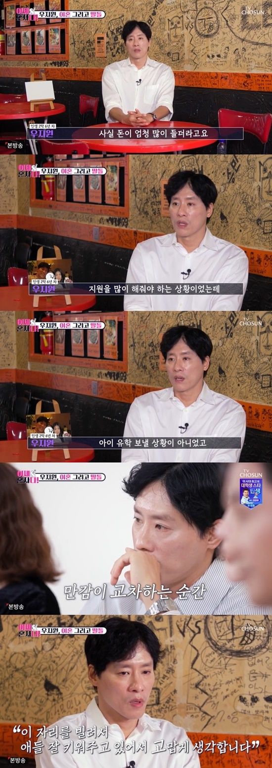 이어 우지원은 "유학을 보내고 나니 돈이 엄청 많이 들더라. 제가 생각했던 것보다 훨씬 더 많이 들었다. 아이가 고등학교 때까지는 어쨌든 제가 선수 생활을 하면서많은 연봉도 받았었고 해서 아이를 학교 보내는 데는 큰 문제가 없었는데, (이혼 후) 제 상황으로는 아이를 유학 보낼 상황이 아니었다"고 조심스레 말했다.