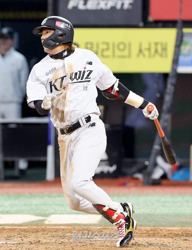 리드는 오래 허락하지 않았다. KT는 2회 말 공격 1사 주자 없는 상황에서 김상수가 LG 선발 최원태를 상대로 내야 안타를 치며 진루했고, 후속 타자 배정대가 우전 안타를 치며 주자를 3루까지 보냈다. 연계 플레이 중 LG 3루수 문보경이 타자주자를 잡기 위해 한 2루 송구를 선택했지만, 공이 외야로 빠지며 김상수의 득점을 허용했다.