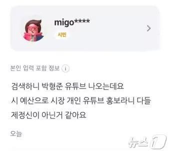 이에 한 누리꾼은 댓글을 통해 “검색해보니 박형준 부산시장 유튜브 영상이 뜨는데 시 예산으로 시장 개인 유튜브 홍보라니 다들 제 정신이 아닌 것 같다”고 비판했다.