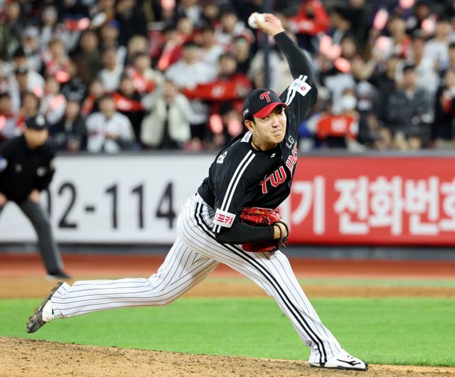 지난해까지 입단 후 7년 동안 개인 통산 2승이 전부였던 손주영은 최근 한 달 동안 값진 '2승(PS 포함)'을 추가했다. 손주영은 준PO 3차전 데일리 MVP(최우수선수)에 뽑혔따.