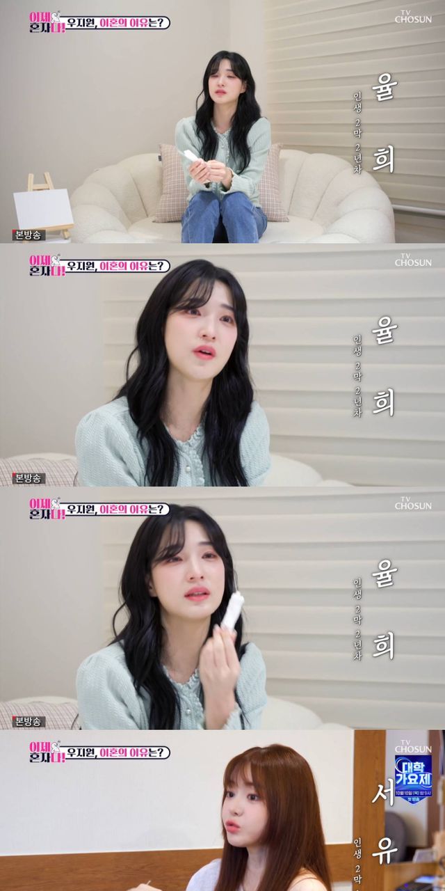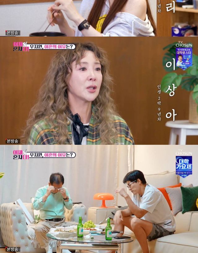 또한 서유리는 "평소에 같이 열심히 하는 거 보면서 열심히 할 수 있겠다고 생각했는데"라고 말했고, 이상아는 "저는 그래서 끝까지 기다렸다"라며 이혼을 언급했다. 우지원은 "누구 탓할 건 없는 것 같다"고 했다.