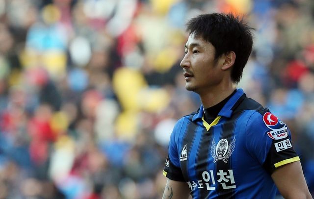2013년 3월 31일 인천축구전용경기장에서 열린 프로축구 현대오일뱅크 K리그1 인천 유나이티드와 대전 시티즌의 후반전 경기에서 인천 이천수가 진지한 표정으로 경기하고 있다. / 연합뉴스