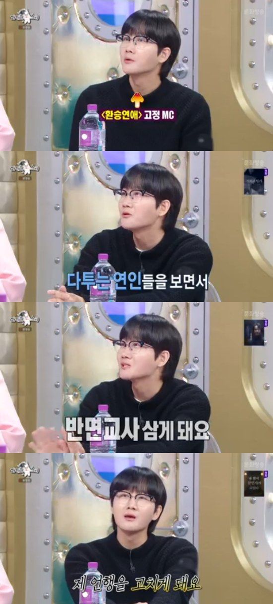 이용진은 "도움이 많이 됐다. '환승연애'를 보면 커플들이 싸우는 장면이 많이 나온다. 그 안에서 잘잘못을 따지지 않냐. 그걸 보면서 반면교사 삼게 되더라"고 했다.