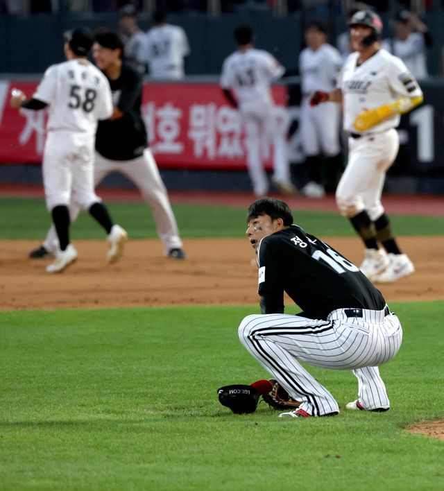 끝내기 패배 순간 마운드에서 털썩 주저앉은 투수는 정우영이었다.