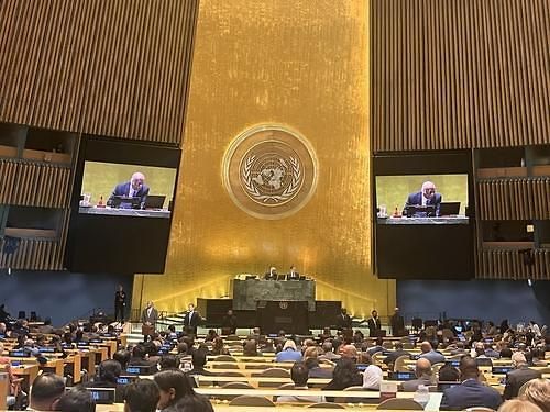当地时间10月9日,在美国纽约的联合国总部,联合国大会举行人权理事会亚太地区成员选举。【图片提供 韩联社】