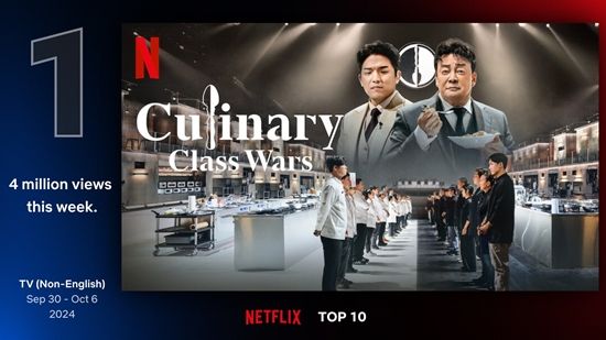지난 9일 넷플릭스 TOP 10 웹사이트에 따르면 '흑백요리사: 요리 계급 전쟁'은 지난달 30일부터 10월 6일까지 4,000,000 시청수(시청 시간을 작품의 총 러닝 타임으로 나눈 값)를 기록했다.