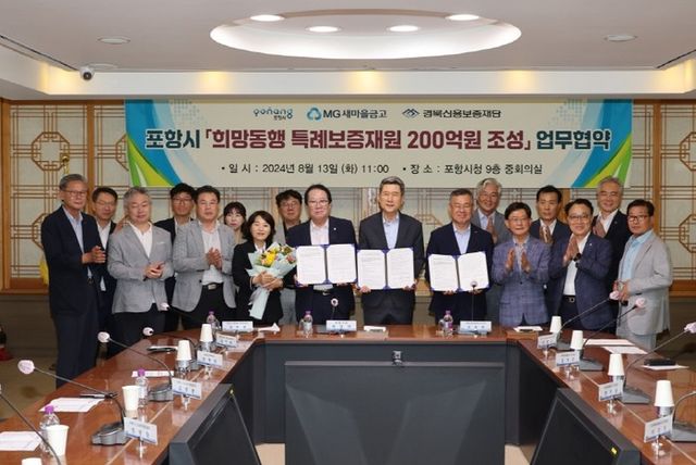 시는 지난 2월 지자체 최초로 iM뱅크(대구은행), 경북신용보증재단과 ‘희망동행 특례보증재원 300억 원’ 업무협약을 체결한 것을 시작으로 포항수협과 오천신협이 각 5천만 원과 2천만 원을 출연해 14억 원의 재원을 추가 조성했다.