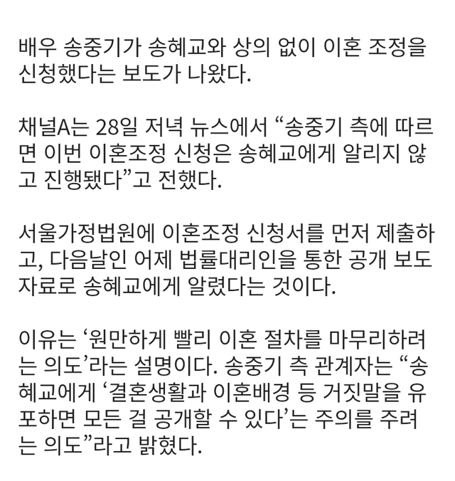 당시 송중기가 송혜교와 상의없이 이혼조정 신청하고