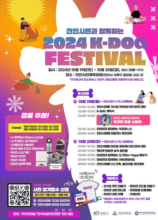 천안시는 오는 19일부터 20일까지 이틀간 천안시민체육공원에서 ‘2024 K-DOG FESTIVAL’을 개최한다고 밝혔다.