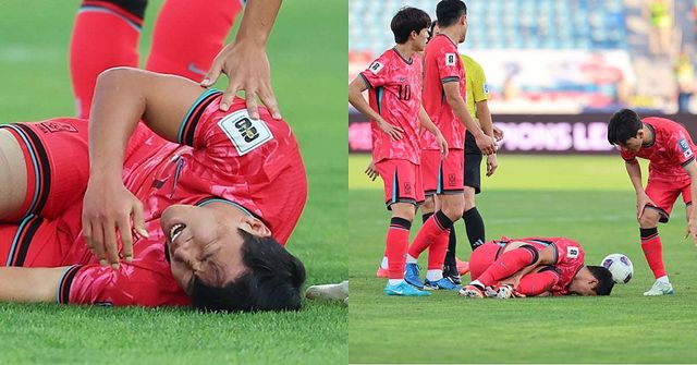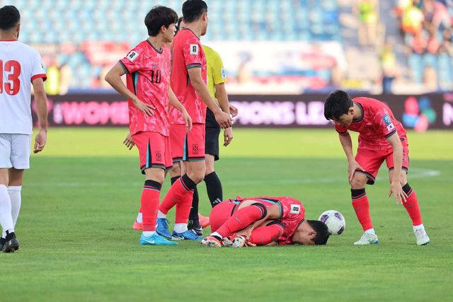 10일(현지시간) 요르단 암만 국제경기장에서 열린 2026 국제축구연맹(FIFA) 북중미 월드컵 아시아 3차 예선 B조 3차전 대한민국과 요르단의 경기, 대한민국 황희찬이 부상을 당해 고통을 호소하고 있다. / 뉴스1