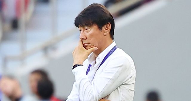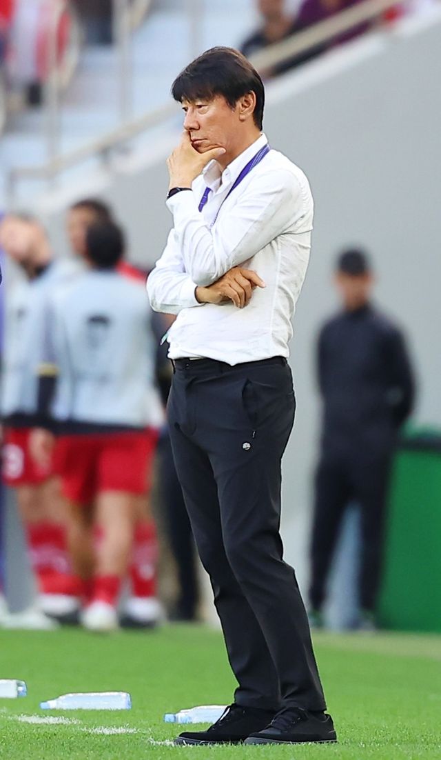지난 1월 24일(현지 시각) 카타르 도하 앗수마마 스타디움에서 열린 2023 아시아축구연맹(AFC) 아시안컵 조별리그 D조 최종전 일본과 인도네시아의 경기에서 인도네시아 신태용 감독이 걱정스럽게 경기를 지켜보고 있다. / 연합뉴스