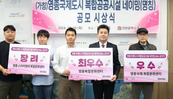 [파이낸셜경제=김영란 기자] 인천시 중구는 ‘(가칭) 영종국제도시 복합공공시설 명칭 공모전’의 최우수상으로 ‘영종복합문화센터’를 선정했다고 11일 밝혔다.