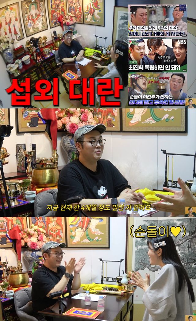 "무당 되고난 후 더 바빠진 거 같다"는 장영란에 이건주는 "요즘 찾아주시는 분도 많다. 들리는 이야기에는 제가 요즘 핫하다더라. 예약 손님은 한 4개월 정도 밀렸다"며 인기를 전했다.