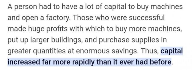 자본을 투입해 자본을 더 키우고 그 더 키워진 자본을 통해 더더욱 큰 자본을 모으는 본격적인 산업 자본주의가 시작됨.