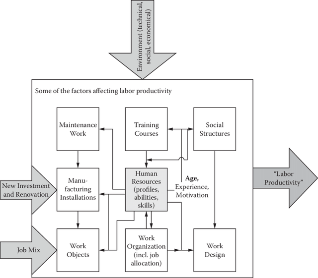 즉 이 노동생산성은 단순 개개인의 근면성을 넘어 업무 숙련도와 기업이 얼마나 많은 자본을 투입해 더 생산 효율이 좋은 설비를 구비하고, 직업 훈련 프로그램등을 갖춰 시간당 생산되는 부가가치를 극대화 시키느냐에 달림.