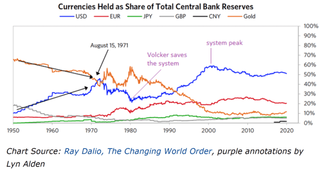 기축통화 패권은 2000년대 초반을 고점으로 하락중임. 기축통화국으로서의 이득도 존재하지만 산업에서의 격차가 훨씬 크고.
