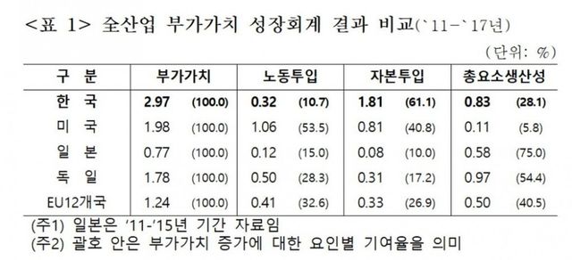 그러면 대체 무엇이냐? 가장 크게 세가지 꼽자면 자본 투입, 노동생산성 증가, 그리고 고부가가치 산업임.