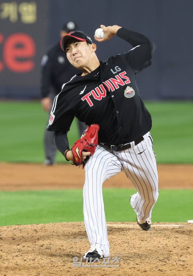 8일 오후 수원 케이티위즈파크에서 열린 LG트윈스와 KT위즈의 2024 신한쏠뱅크 KBO포스트시즌 준플레이오프 3차전. LG 투수 손주영이 3회 선발 최원태에 이어 등판 역투하고있다. 수원=정시종 기자 capa@edaily.co.kr /2024.10.08.