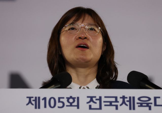장미란 문화체육관광부 제2차관이 전국체육대회 현장을 찾아 선수들을 격려한다.