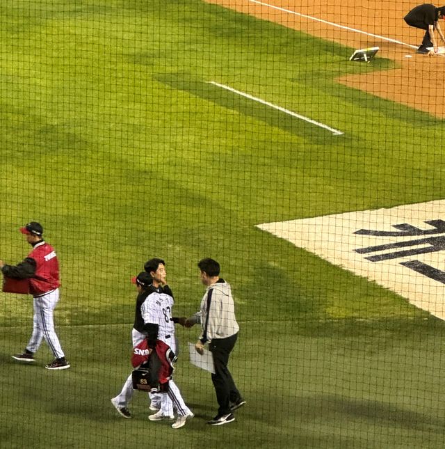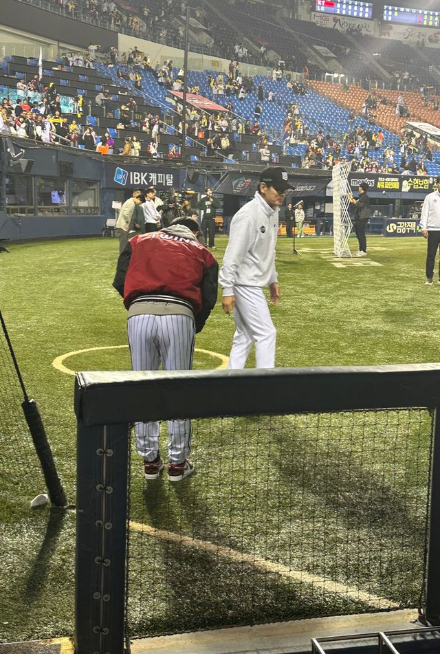 그라운드에서 방송 인터뷰를 마친 뒤 1루측 더그아웃으로 발걸음을 옮겼다. 승장 인터뷰를 대기하고 있던 염경엽 감독에게 축하 인사를 건네기 위해서다. 이를 확인한 염경엽 감독이 더그아웃 앞으로 걸어나가 악수한 뒤 허리를 숙여 인사했다.