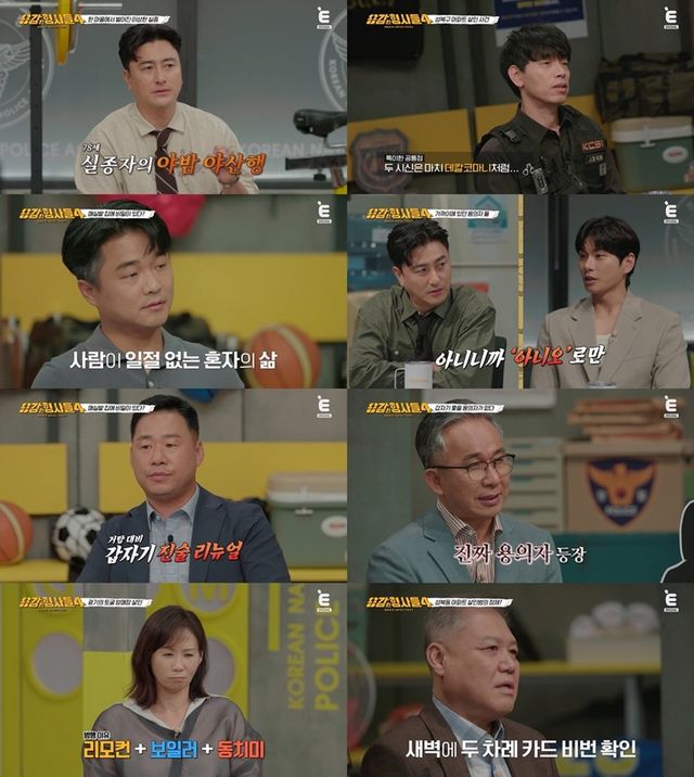 지난 11일 방송된 티캐스트 E채널 ‘용감한 형사들4’(연출 이지선) 5회에는 충남 홍성경찰서 오관지구대 김상구 경감과 여성청소년수사팀 백성흠 경사 그리고 과학수사대(KCSI) 윤외출 전 경무관과 김진수 경감이 출연해 직접 발로 뛴 수사 일지를 공개했다.