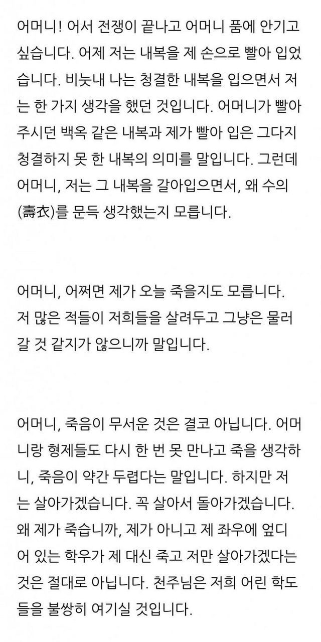 문학의 압도, 와중에 눈에 확 들어오는 중3의 편지