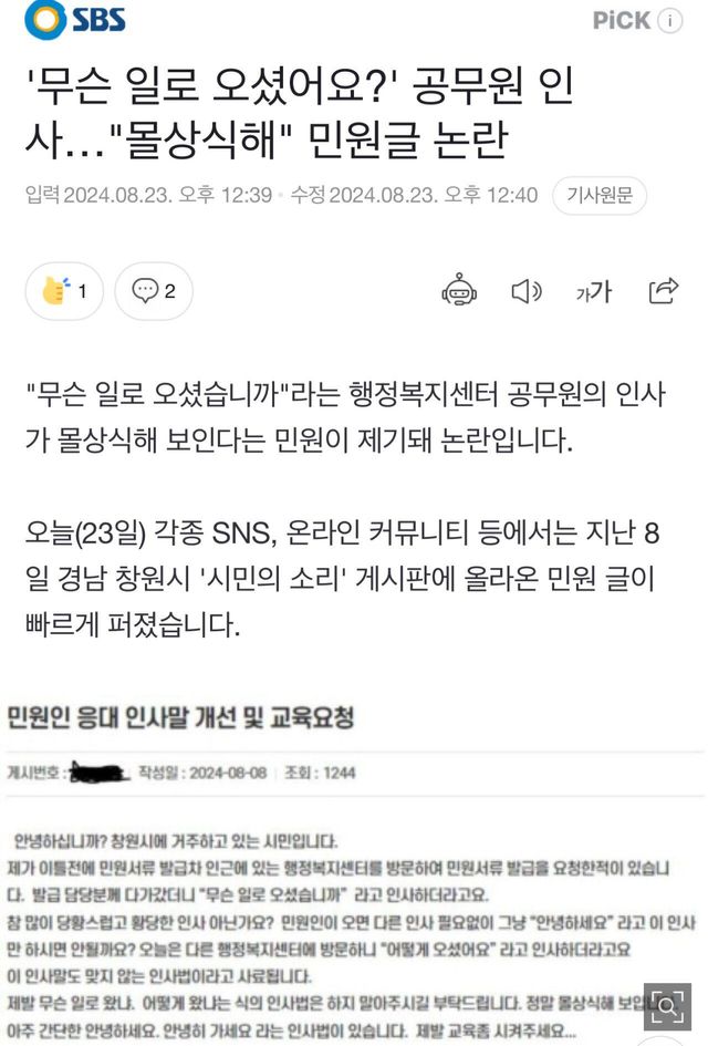 창원시 시민의 소리에 올라온 민원 내용