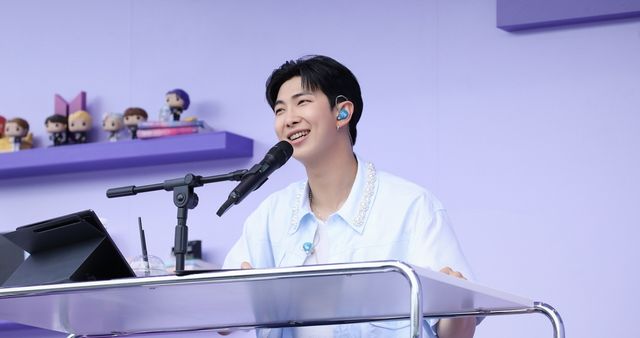 그룹 방탄소년단(BTS)의 리더 RM이 지난해 6월 17일 오후 서울 여의도 한강공원에서 열린 'BTS 10th Anniversary FESTA @여의도(Yeouido)'의 프로그램 '오후 5시, 김남준입니다'를 진행하고 있다. / 뉴스1=빅히트 엔터테인먼트