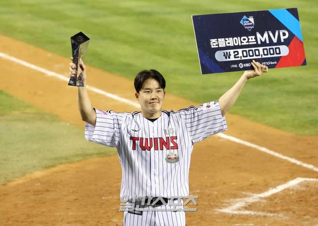이번 준PO 최우수선수(MVP)로는 2차례 선발 등판에서 2승, 평균자책점 1.59를 거둔 임찬규가 선정됐다. 기자단 투표 67표 중 과반이 넘는 34표를 받았다.
