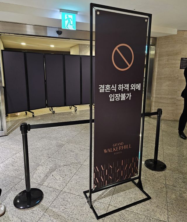 이날 오전부터 결혼식이 진행되는 비스타홀 입구는 물론 지하 2~3층 주차장과 1층 입구까지 모두 통제됐다. 결혼식은 비공개로 약 2∼3시간 동안 진행되며 사전에 초정장을 받은 사람만 입장할 수 있는 것으로 알려졌다.