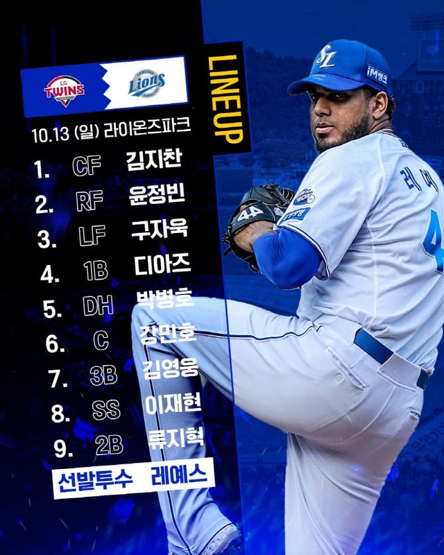 이날 삼성은 김지찬(중견수)-윤정빈(우익수)-구자욱(좌익수)-디아즈(1루수)-박병호(지명타자)-강민호(포수)-김영웅(3루수)-이재현(유격수)-류지혁(2루수) 순서로 타순을 짰다.