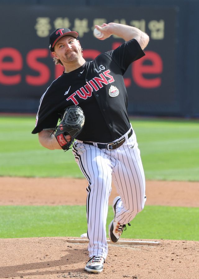 9일 오후 수원 케이티위즈파크에서 열린 LG트윈스와 KT위즈의 2024 신한쏠뱅크 KBO포스트시즌 준플레이오프 4차전. LG 선발 엔스가 힘차게 공을 던지고 있다. 수원=정시종 기자 capa@edaily.co.kr /2024.10.09.