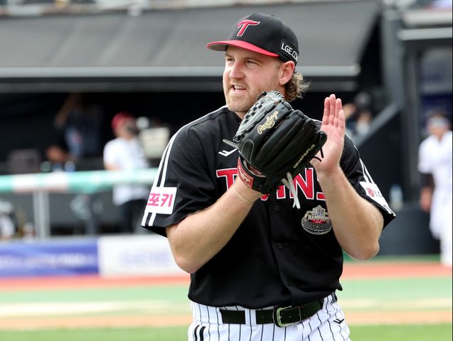 2024 프로야구 KBO 포스트시즌 kt위즈와 LG트윈스의 준플레이오프(준PO) 4차전 경기가 9일 오후 수원kt위즈파크에서 열렸다. 3회말 수비를 삼자범퇴로 마친 엔스가 동료들에게 박수를 보내며 마운드를 내려가고 있다. 수원=김민규 기자 mgkim1@edaily.co.kr /2024.10.09/
