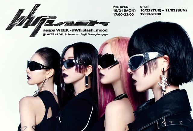 에스파 미니 5집 앨범 'Whiplash'(위플래스) 발매 기념 팝업 스토어 'aespa WEEK - #Whiplash_mood '(에스파 위크 – #위플래시 무드)는 10월 21일부터 11월 3일까지 2주간 서울시 성동구 아차산로9길 41에서 진행된다.